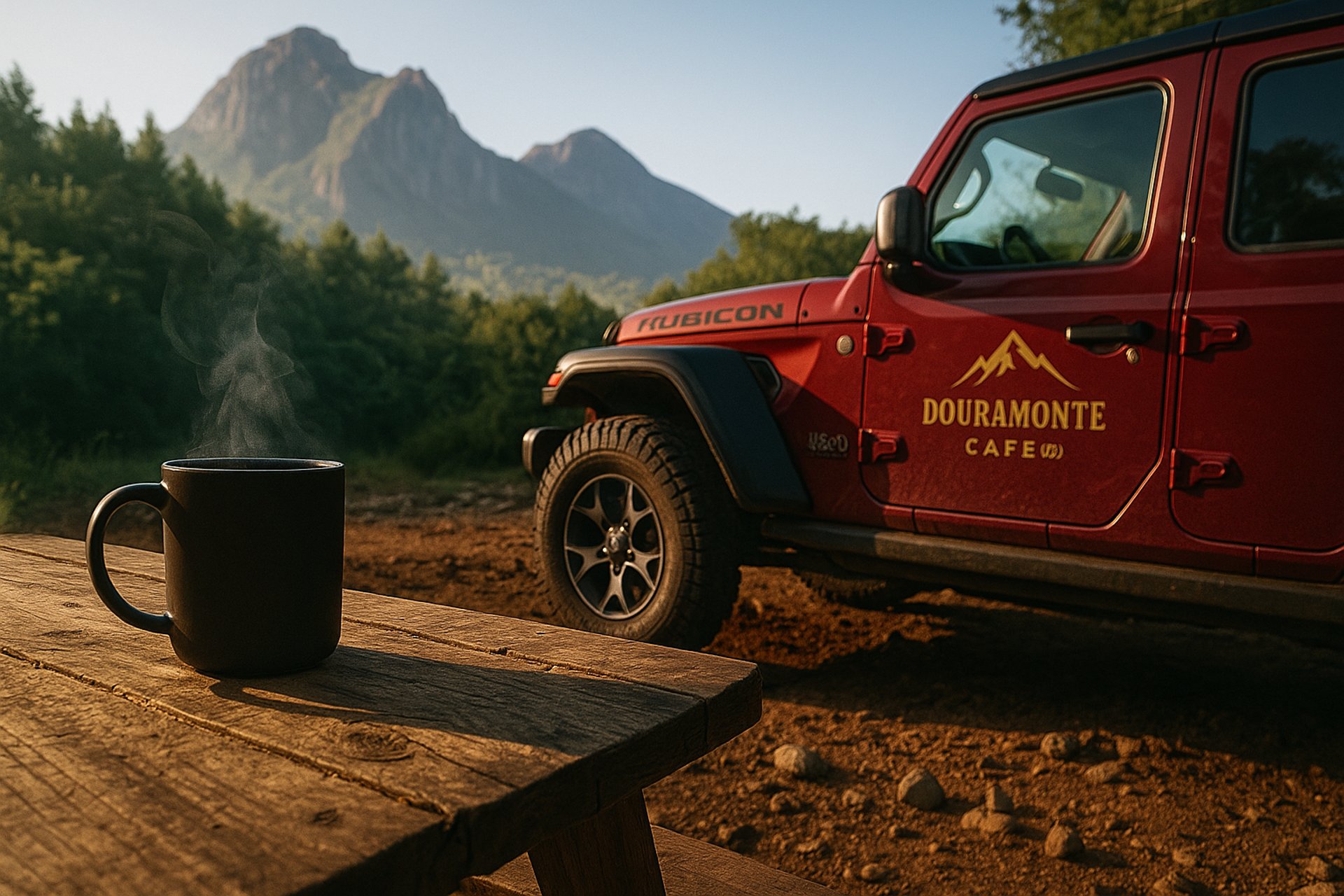 “Das montanhas e trilhas nasce a Douramonte — O café que desperta a alma aventureira".